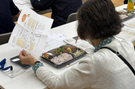 初回は東京科学大学の松尾教授によるオーラルフレイル・フレイル予防について講話、咀嚼チェック等行い、本プログラムの目玉でもある噛むことを意識した食材や調理方法で作った「カムカム弁当」をゆっくりよく噛みながら実食。参加者のみなさまからは、「とてもおいしいお弁当、ありがとうございました」などのコメントをいただきました。