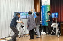2025年10月4日(土)小矢部市との地方創生に関する連携協定に基づき、高齢者の集いの場(いきいきサロン)において、交通安全危険予測シミュレータを使った交通安全教室を開催しました。(参加者約30名)