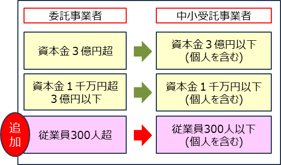 取適法が適用される事業者については、改正前は資本金の基準だけでしたが、改正により従業員数基準が追加されました。